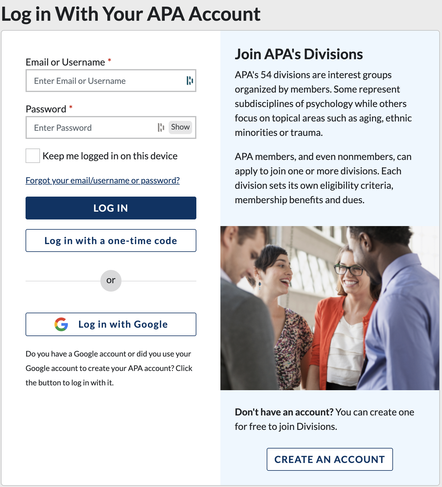 Members of APA can join the Society for the Study of Peace, Conflict, and Violence (Division 48: Peace Psychology) or renew their membership by logging in to their MyAPA membership profile and adding Division 48.